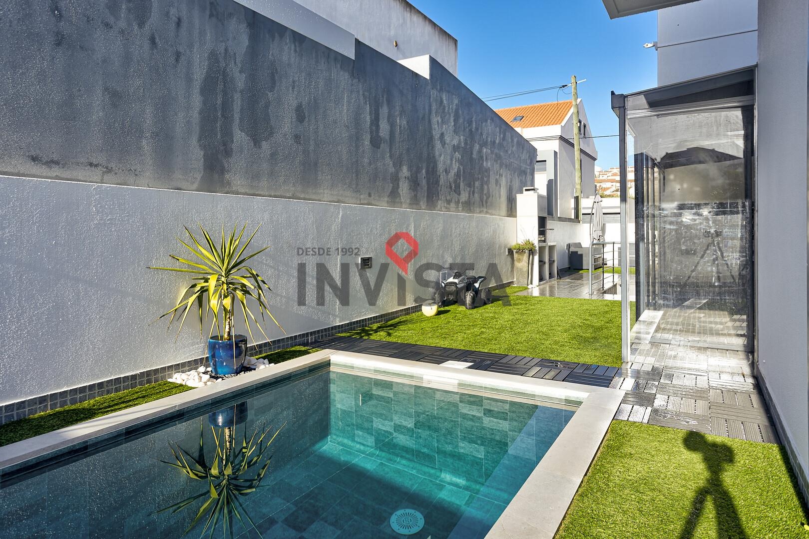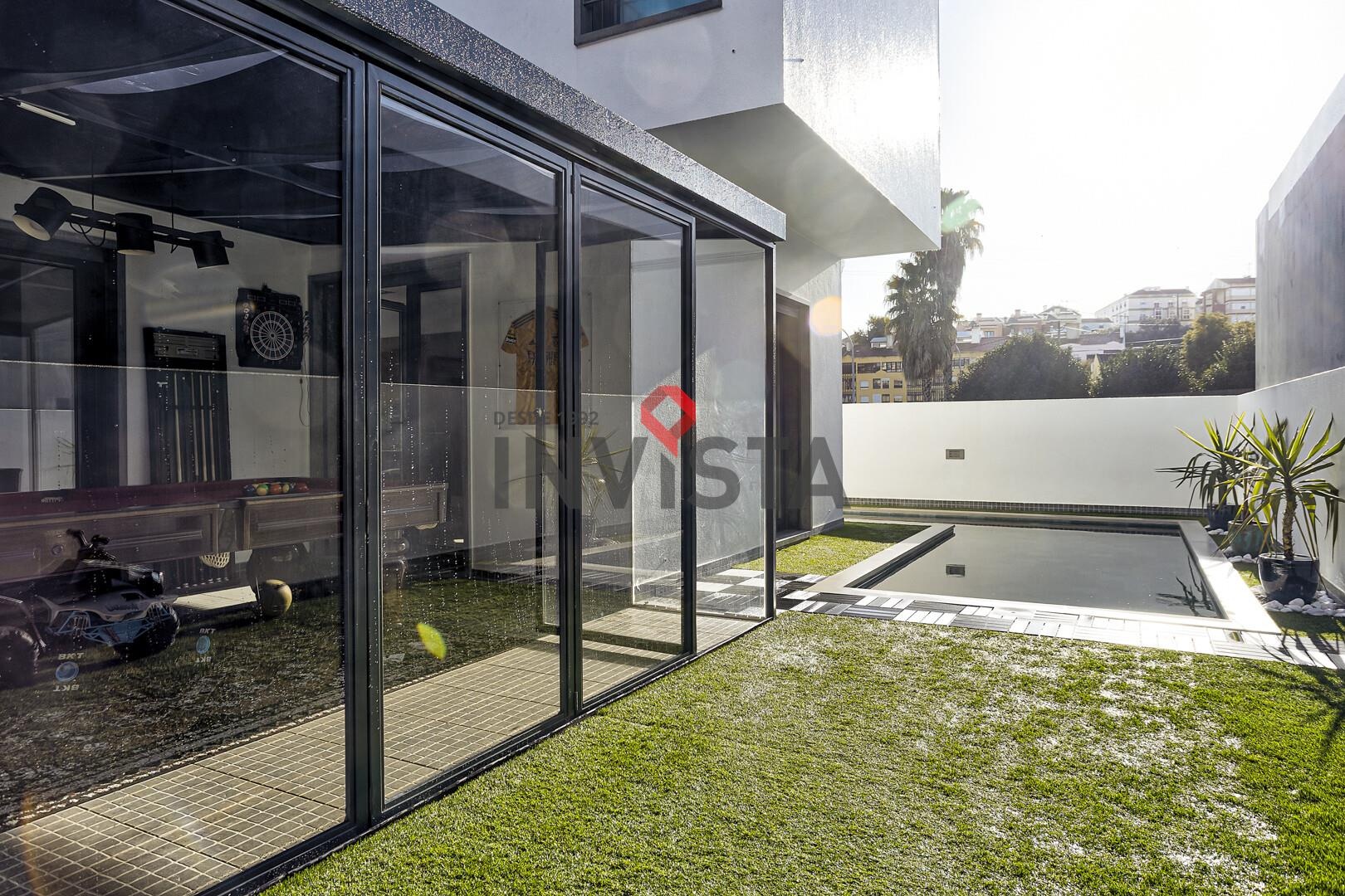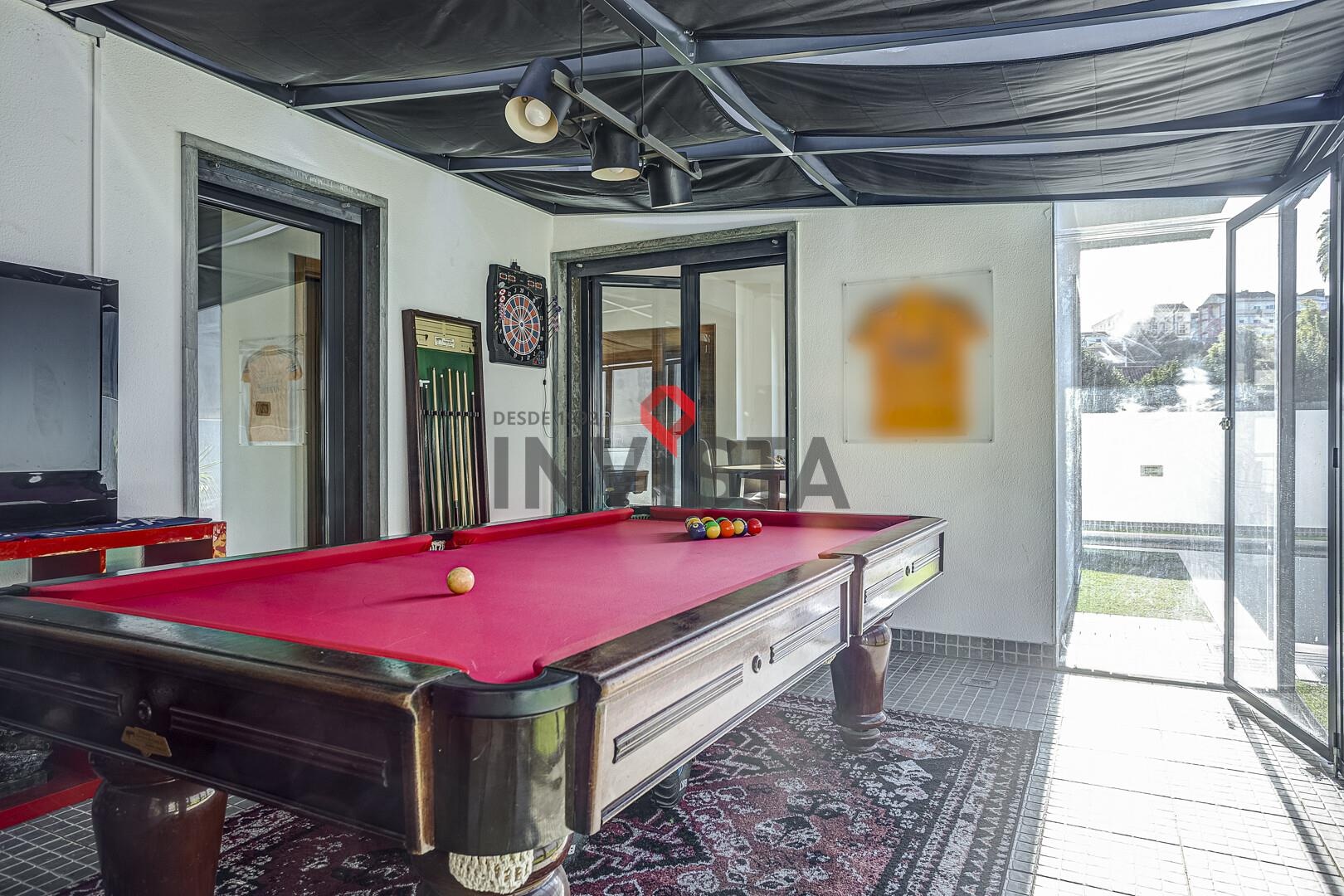 No exterior, a moradia oferece um agradável espaço de lazer, com jardim e piscina aquecida, com tratamento a sal e sistema automático de controlo de ph, ideal para momentos de convívio e descanso. Existe ainda uma zona coberta envidraçada, atualmente utilizada como sala de jogos, que funciona como extensão da área social e permite usufruir do espaço ao longo de todo o ano.